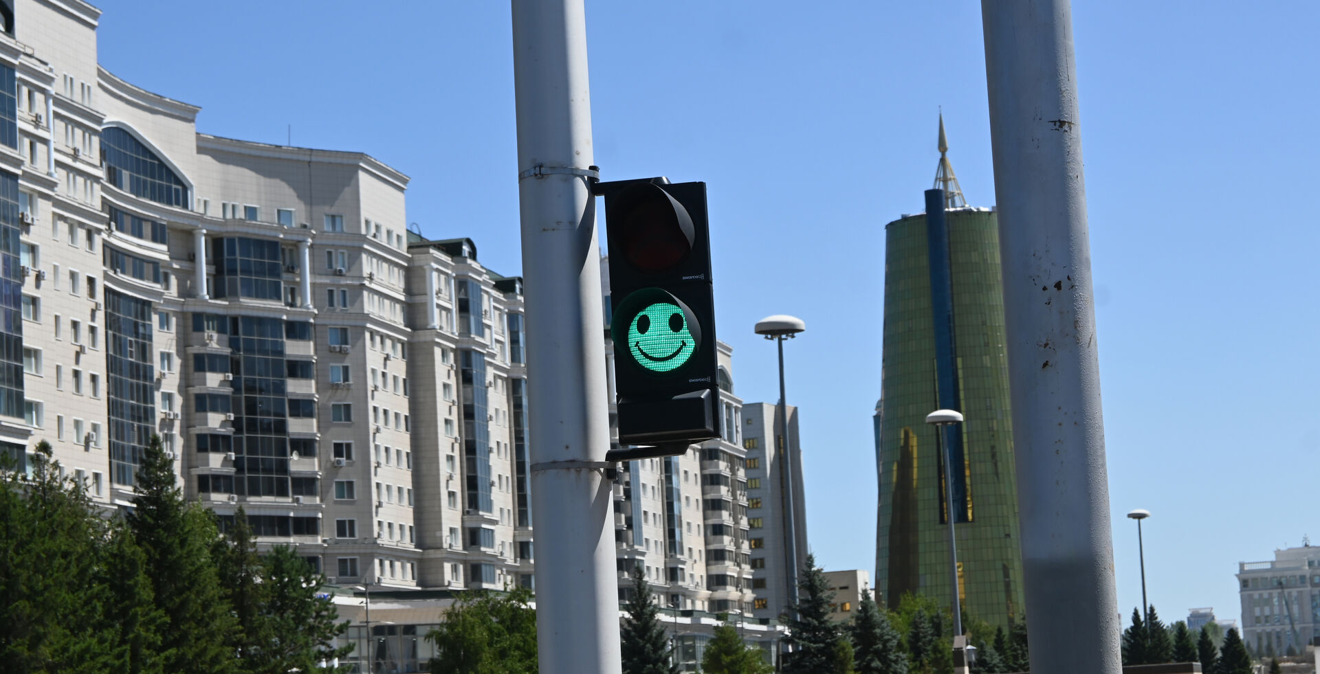 Вот такие интересные кнопки для перехода дороги в Астане. По ним, как я понял, мало нажать, по ним нужно прям “шлёпнуть” :D