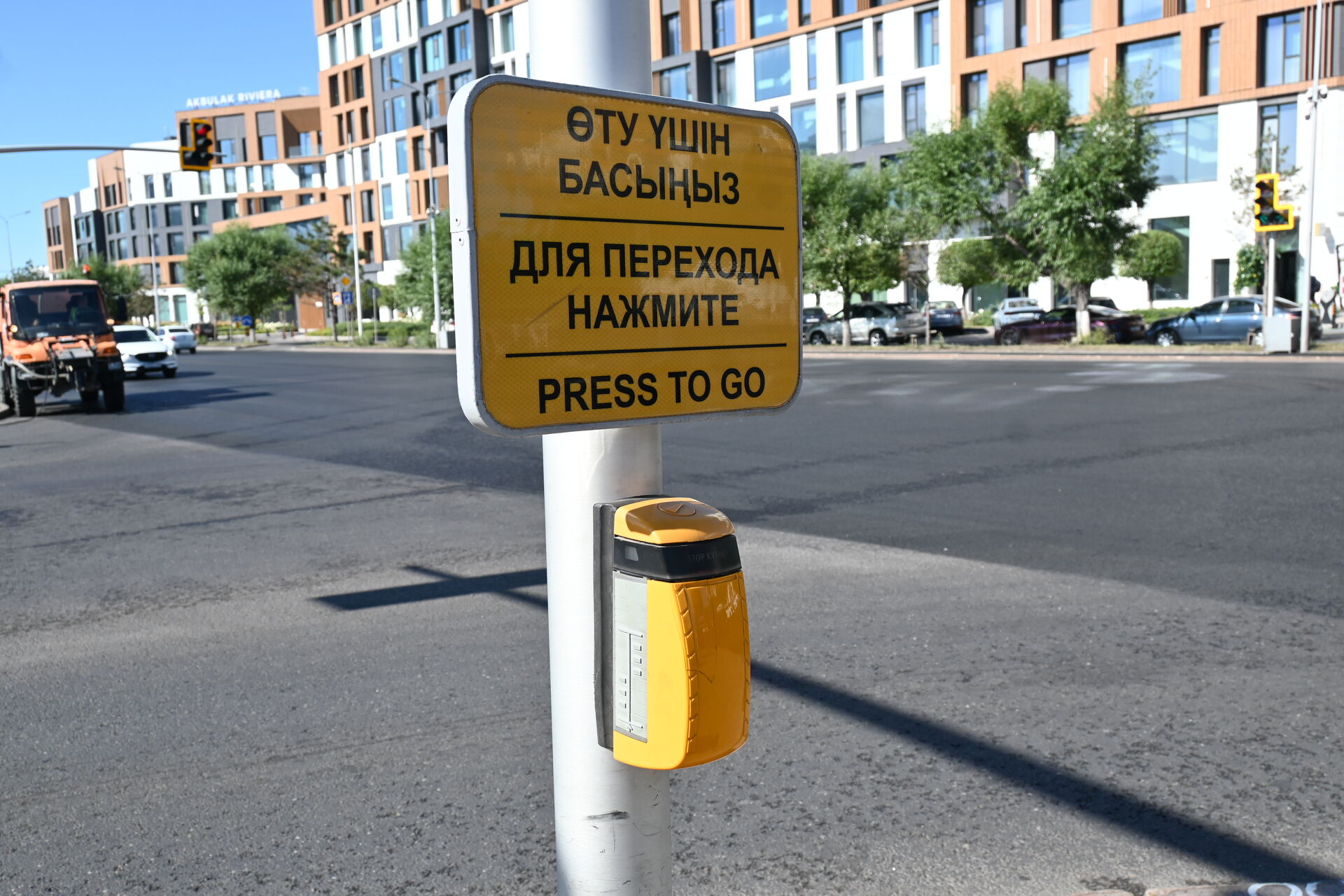 Вот такие интересные кнопки для перехода дороги в Астане. По ним, как я понял, мало нажать, по ним нужно прям “шлёпнуть” :D