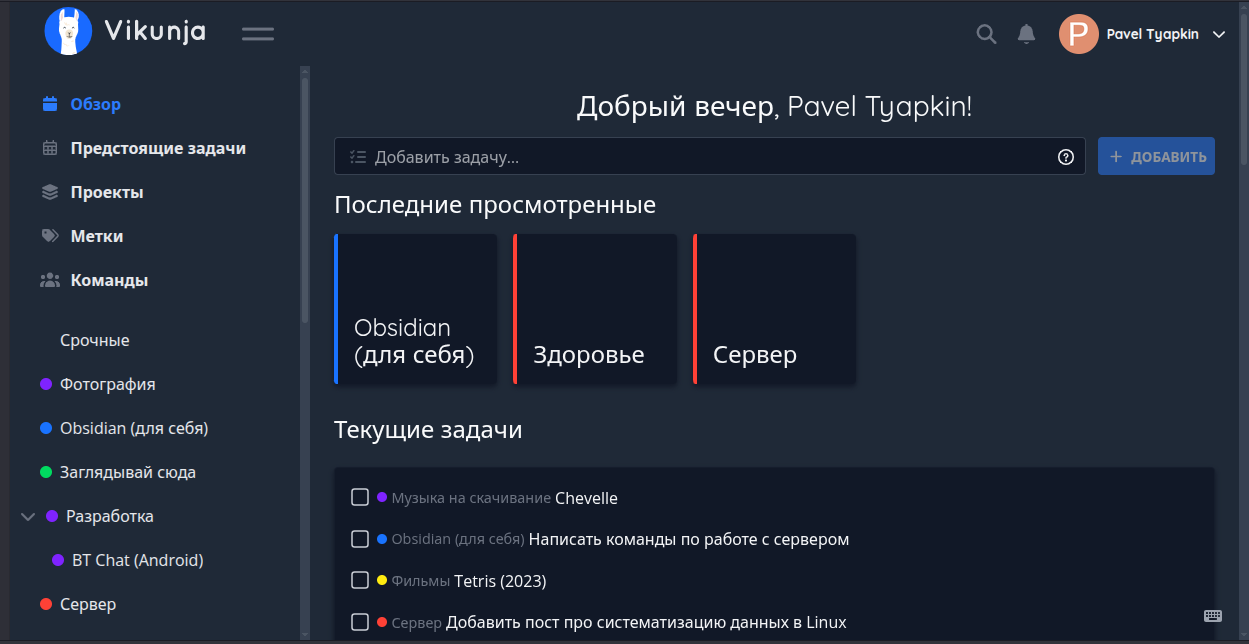 - Есть возможность разделять задачи по проектам, добавлять теги и всё это удобно и без костылей.