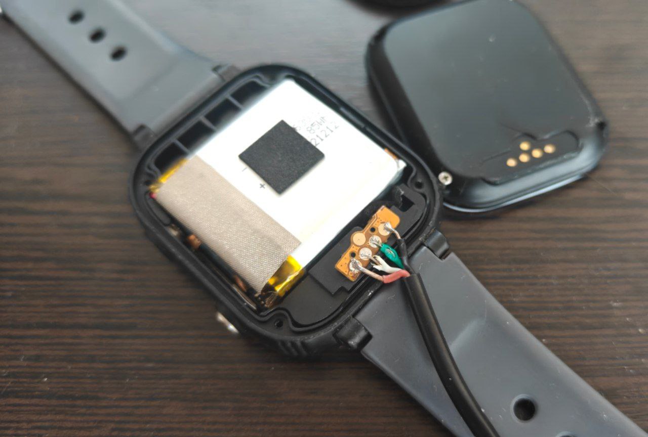Итак, часы нужно зарядить. Поскольку кабеля у меня нет, открываю корпус и подпаиваюсь к контактам на шлейфе, заодно подключаю USB для взаимодействия с ПК.